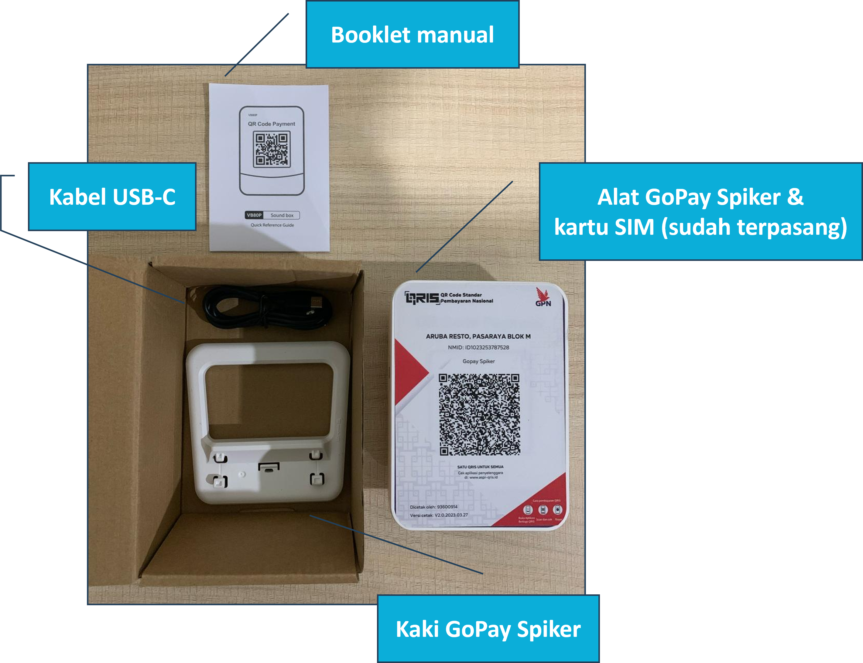 ✅ Isi paket lengkap⚠️ Jika salah satu hal pada gambar di bawah ini tidak ada, silakan laporkan melalui artikel "Paket GoPay Spiker tidak lengkap".