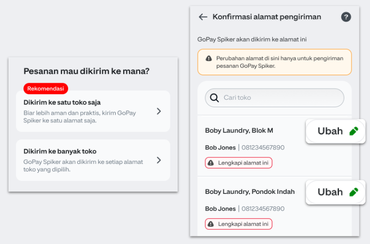 - Pilih toko yang ingin dikirimkan GoPay Spiker; lalu