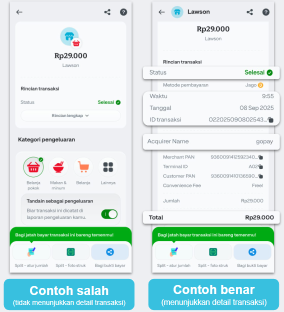 Beberapa bukti pembayaran harus diklik dulu untuk menampilkan detail transaksi. Laporan tidak dapat kami proses tanpa detail tersebut.