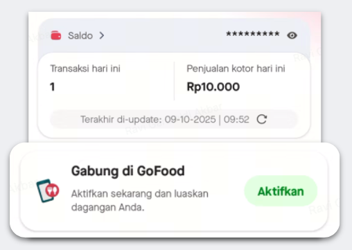- Temukan banner “Gabung di GoFood”, lalu klik ‘Aktifkan’.