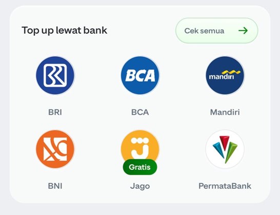 Berikut pilihan metode pembayaran yang dapat kamu gunakan untuk top up GoPay, di antaranya: