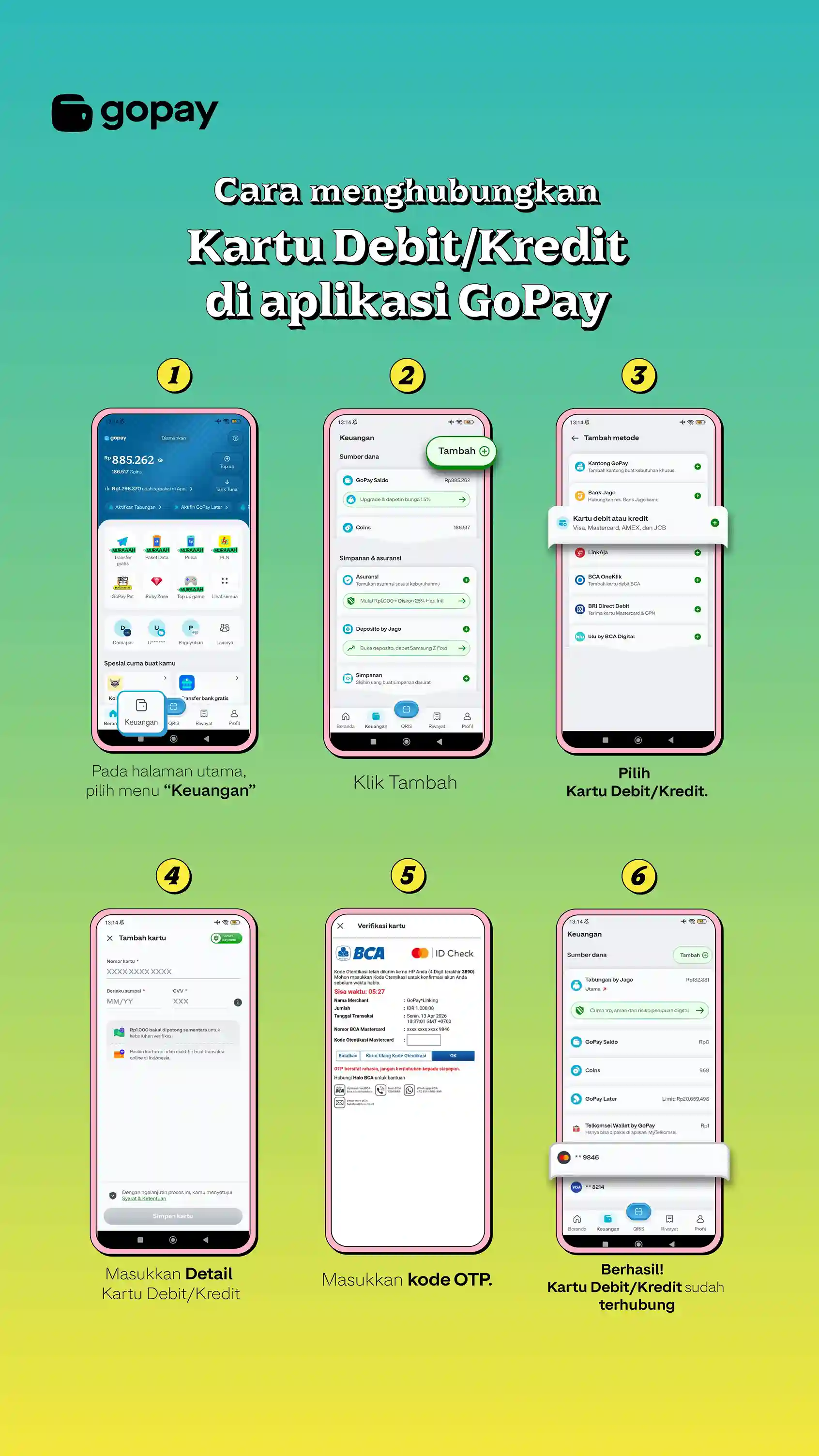Sebelum bayar, kamu perlu menghubungkan Kartu Debit/Kartu Kredit kamu di aplikasi GoPay. Ini caranya!