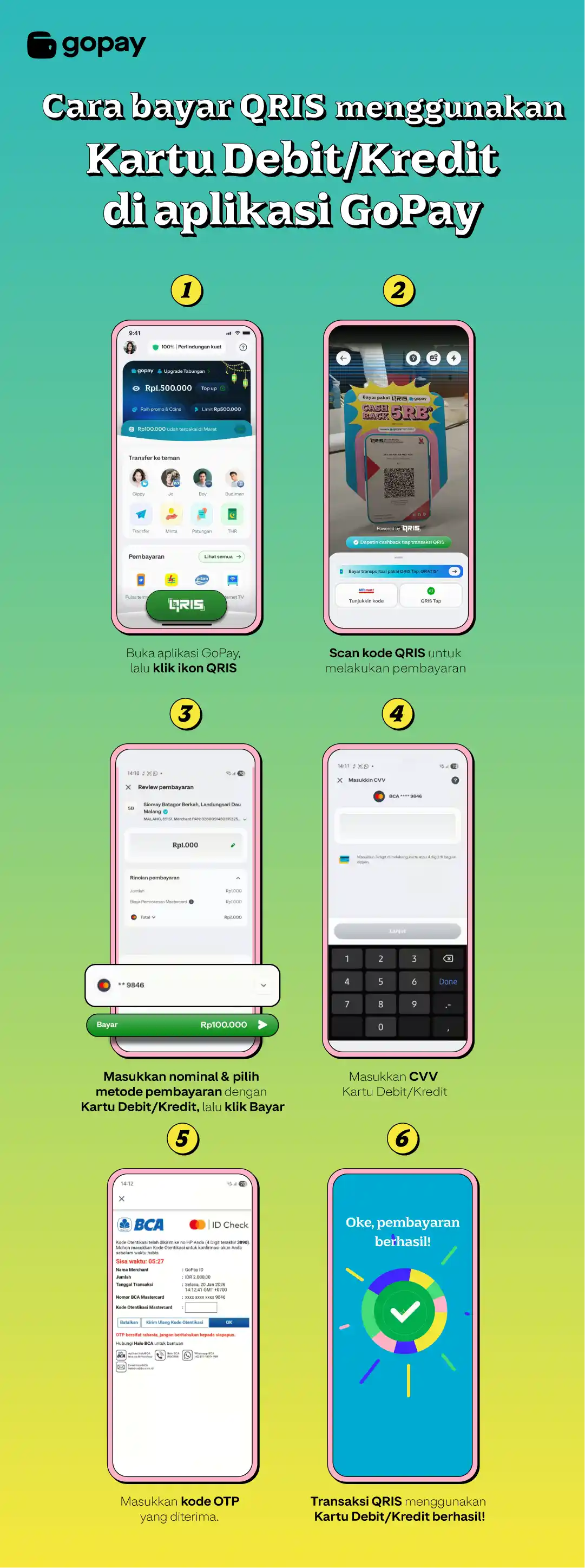 Saat ini, fitur bayar QRIS pakai kartu debit/kredit i aplikasi GoPay baru tersedia untuk pengguna terpilih. Kalau kamu udah dapetin akses, kamu bisa langsung mencoba fitur ini di aplikasi GoPay. Tapi tenang aja, karena ke depannya, fitur ini akan tersedia lebih luas untuk semakin banyak pengguna.