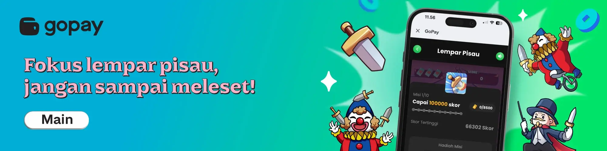 Biar makin menantang, ada kartu spesial yang bisa kamu incar. Kalau berhasil kena, skormu bakal naik lebih cepat. Dan tentu aja, makin tinggi skor yang kamu capai, makin besar juga hadiah GoPay Coins yang bisa kamu dapetin. Jadi, jangan ragu buat push skor kamu, lempar dengan akurat dan kumpulin hadiahnya, ya.