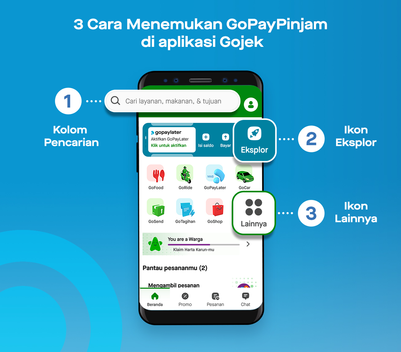 Catatan: Kamu belum memiliki akses GoPay Pinjam? Tenang, jangan bersedih hati. Kamu bisa mendapatkan GoPay Pinjam dengan cara melakukan transaksi lebih sering di mana aja kapan aja pake GoPay atau kamu juga bisa langsung download aplikasi GoPay sekarang.