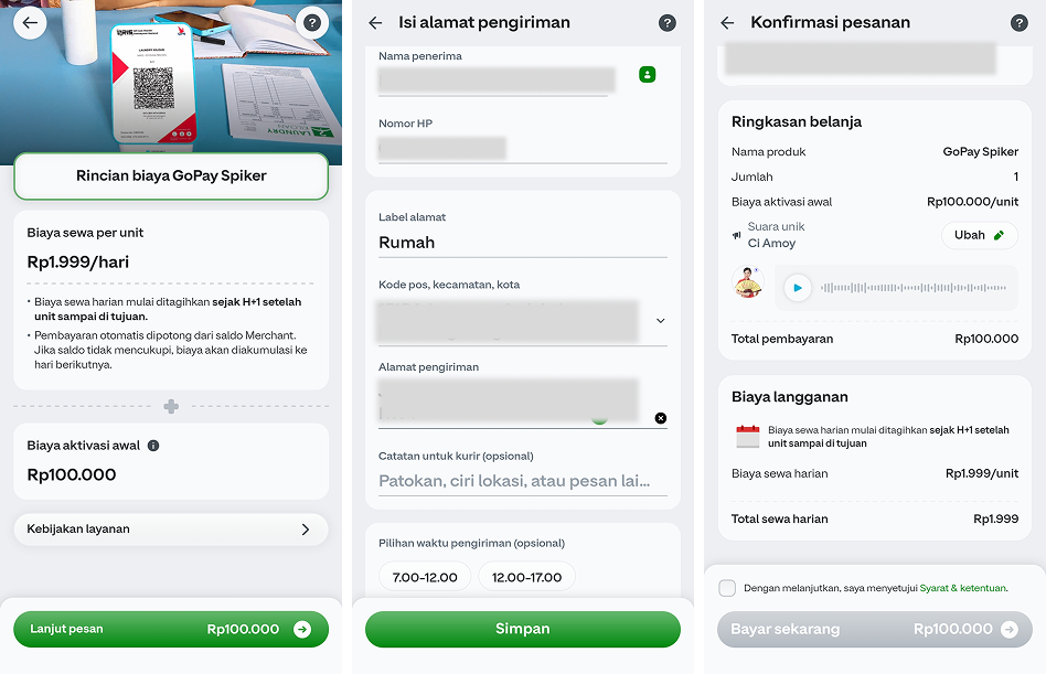 Setelah pembayaran berhasil, GoPay Spiker dengan karakter suara pilihanmu akan segera dikirim ke alamatmu.