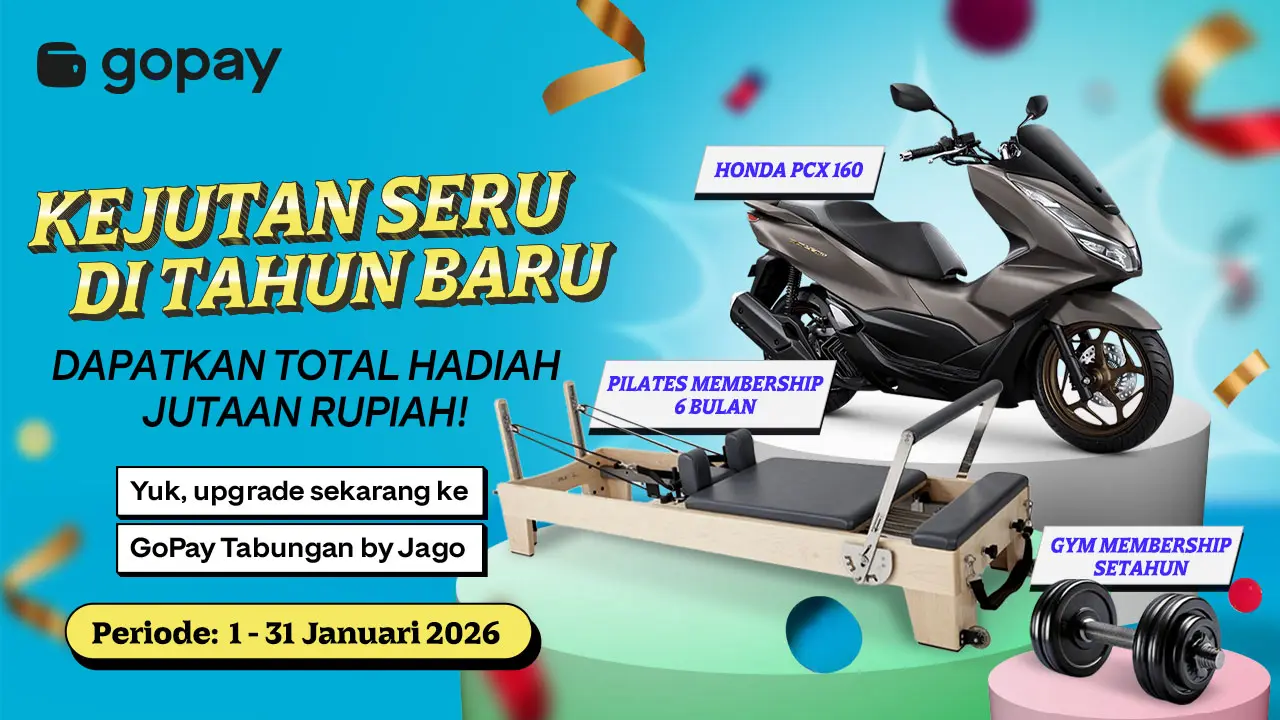 - Kejutan Seru di Tahun Baru dari GoPay Tabungan by Jago: Menangkan Motor, Gym Membership 1 Tahun, Pilates Membership hingga 10.000.000 Juta GoPay Coins