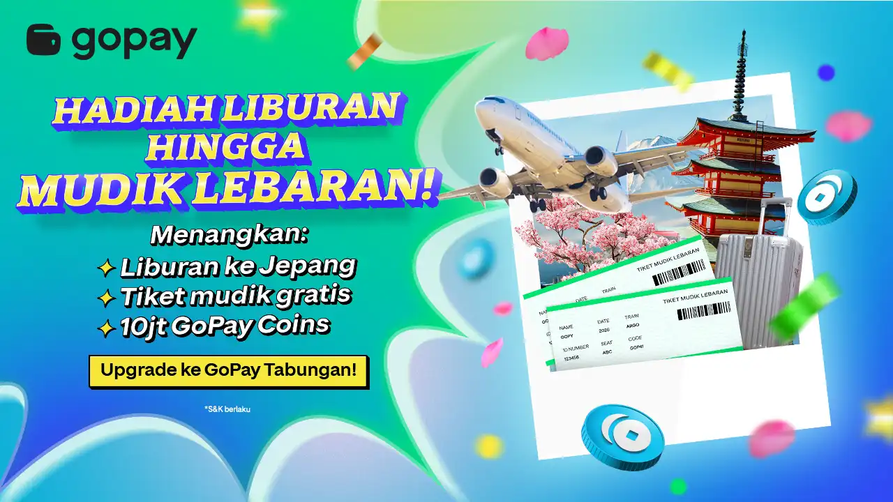 - Hadiah Liburan hingga Mudik Lebaran: Liburan ke Jepang, Tiket Mudik hingga 10.000.000 Juta GoPay Coins