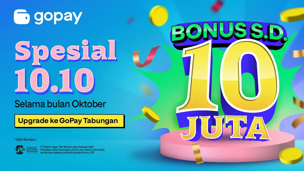 - Upgrade/registrasi ke GoPay Tabungan by Jago selama periode promo pada aplikasi GoPay atau Gojek.