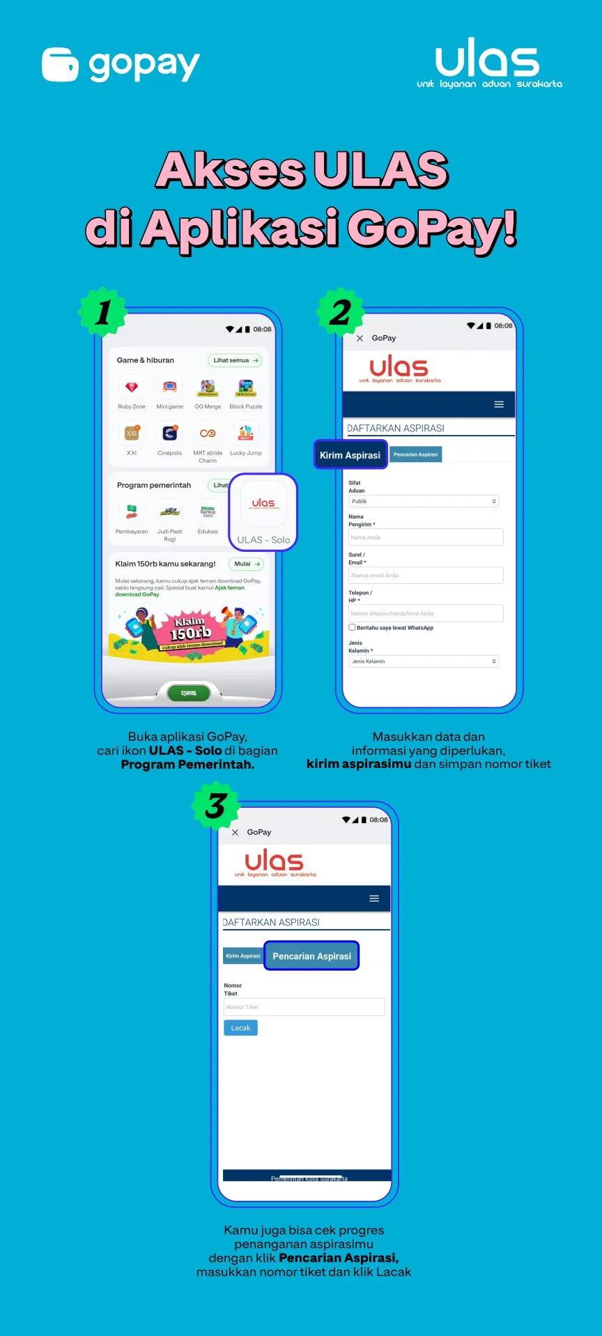 - Buka aplikasi GoPay, cari ikon ULAS - Solo di bagian Program Pemerintah