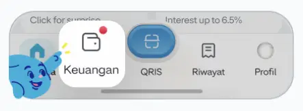 - Pada halaman utama kamu, klik logo "QRIS" yang berada di bar navigasi yang terletak di bawah halman