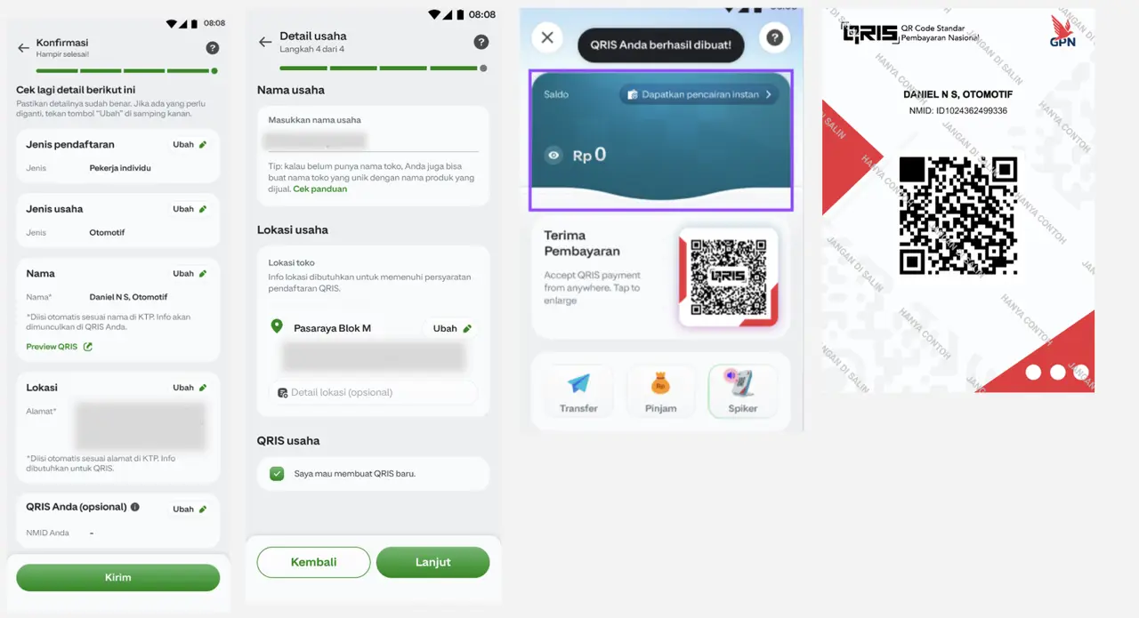 Fitur ini dilengkapi dengan berbagai alat pendukung bisnis seperti laporan transaksi, pencatatan keuangan, dan berbagai fitur operasional lainnya. Perlu dicatat bahwa pendaftaran dan penggunaan QRIS untuk tujuan bisnis diatur oleh Bank Indonesia.