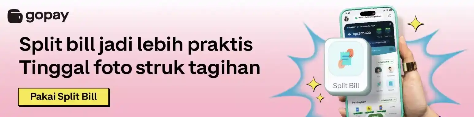 Biar jajan atau beli menu makanan favoritmu makin gampang, kamu bisa langsung bayar pakai QRIS GoPay di mana aja, atau kirim uang dengan transfer pakai GoPay, sampai patungan bayar-bayar pakai fitur split bill pakai GoPay.