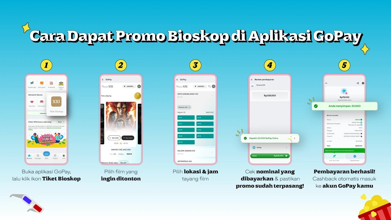 Yuk, rasain serunya beli tiket bioskop langsung di aplikasi GoPay dan nikmatin pengalaman nonton yang tanpa ribet. Tinggal klik, pilih, bayar, duduk manis, and enjoy the show!