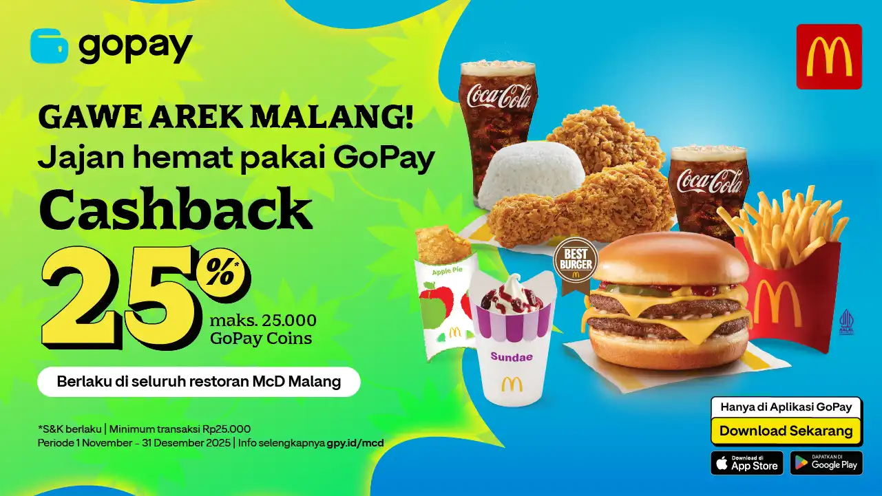 - Promo McDonald's Area Malang: Cashback hingga 25.000 GoPay Coins