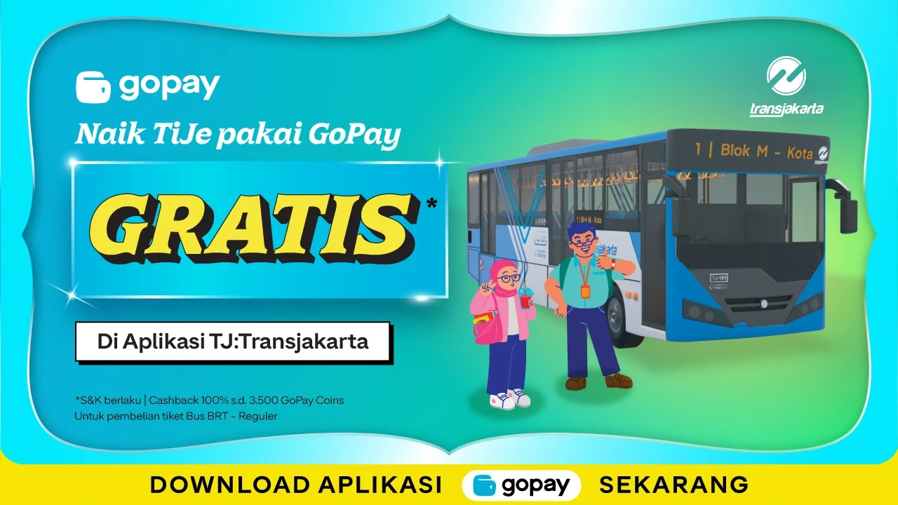 Jangan lewatkan kesempatan spesial ini untuk naik Transjakarta jadi lebih cepat, praktis dan hemat. Cukup beli tiket lewat aplikasi TiJe, bayar pakai GoPay, dan nikmati promo menarik untuk perjalanan yang nyaman tanpa ribet.