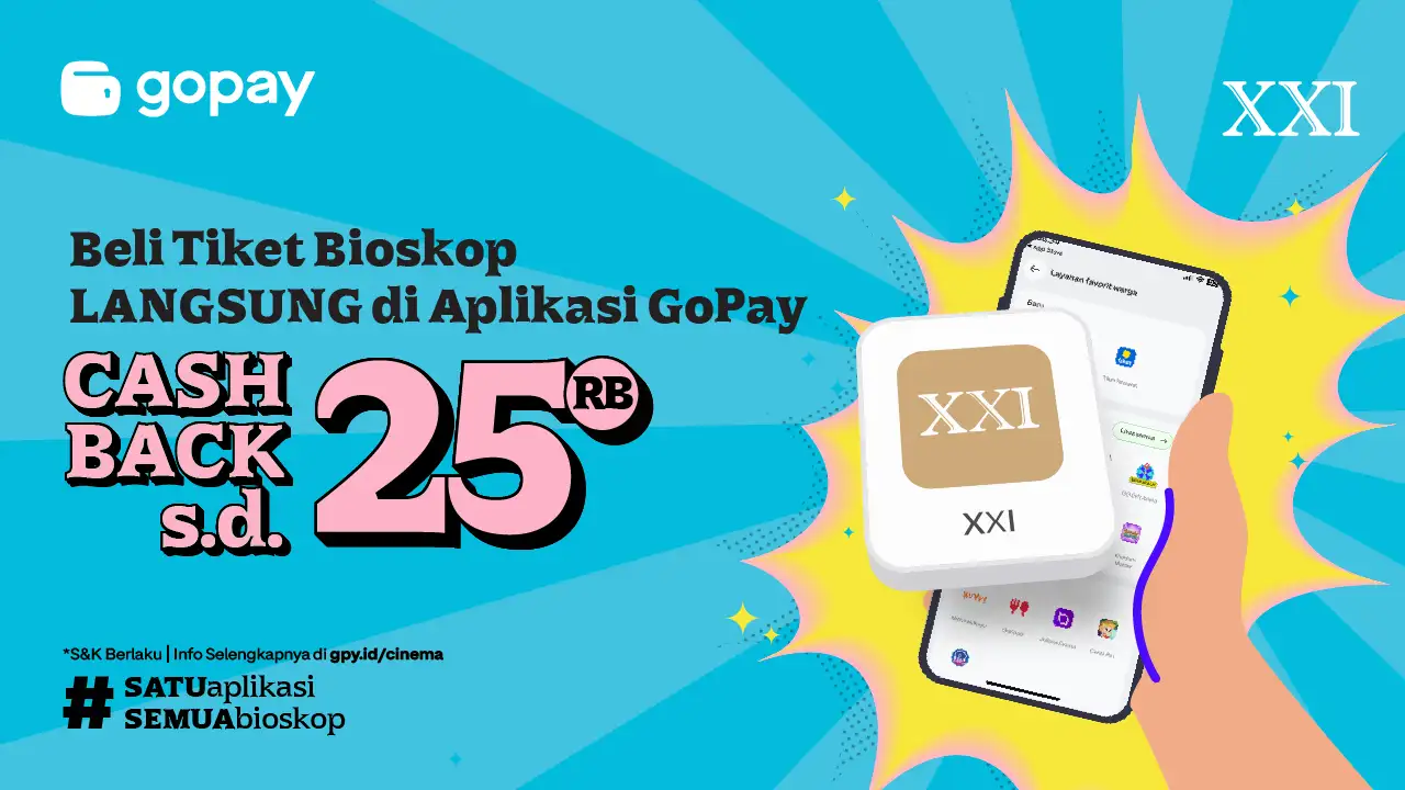 Enaknya lagi sekarang lagi ada promo XXI dari GoPay, kamu bisa dapetin cashback banyak banget. Mantul kan? Cek selengkapnya promo XXI di bawah ini!